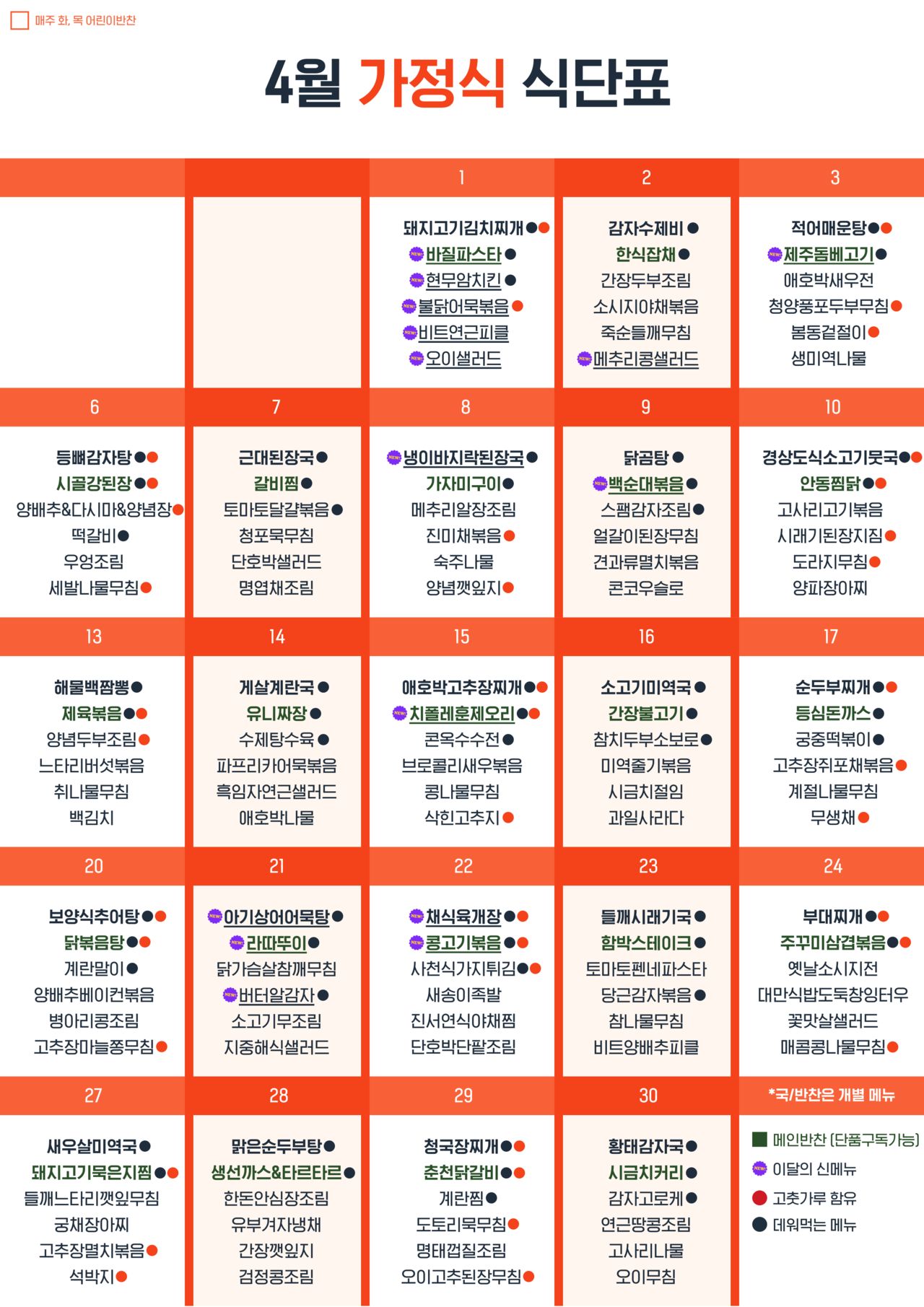 👧 화/목 어린이메뉴는 고춧가루를 사용하지 않아 자극적이지 않은 메뉴로 구성하여 어린이뿐만