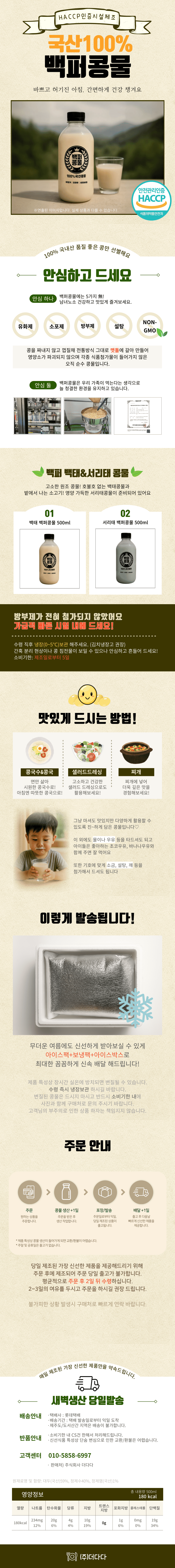 100%국내산 콩을 사용하였으며 해썹인증업체에서 생산합니다.