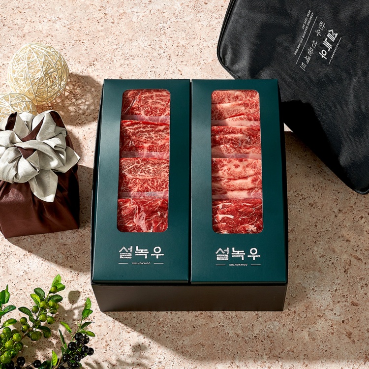 1++ 한우 프리미엄 구이 세트 총1.44kg(등심540g+제비추리360g+업진살540g)설녹우 한우는 주문후 세심한 지방제거 근육막 제거로
